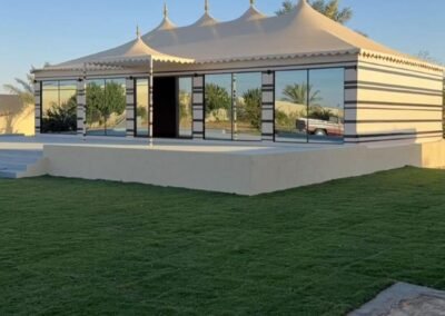 نعيد إحياء التراث العربي الأصيل بروح عصرية فخمة تليق بمقام ضيوفك. تقوم مظلات وسواتر الرياض بتجهيز وبناء بيوت شعر وخيام ملكية متكاملة المواصفات، بدءاً من الهيكل الحديدي المتين المرفوع عن الأرض، وصولاً إلى الديكورات الداخلية التراثية، أقمشة السدو الفاخرة، الإنارة المخفية، والعزل الحراري الكامل للجدران والسقف. اصنع لنفسك ولضيوفك مجلساً يجمع بين عبق التاريخ ورفاهية الحاضر.
