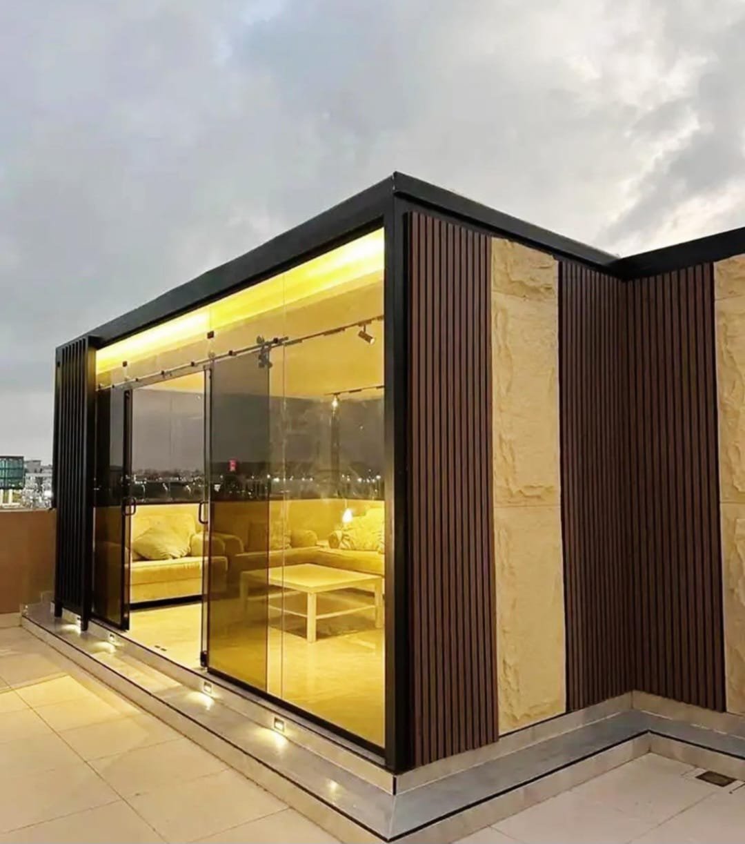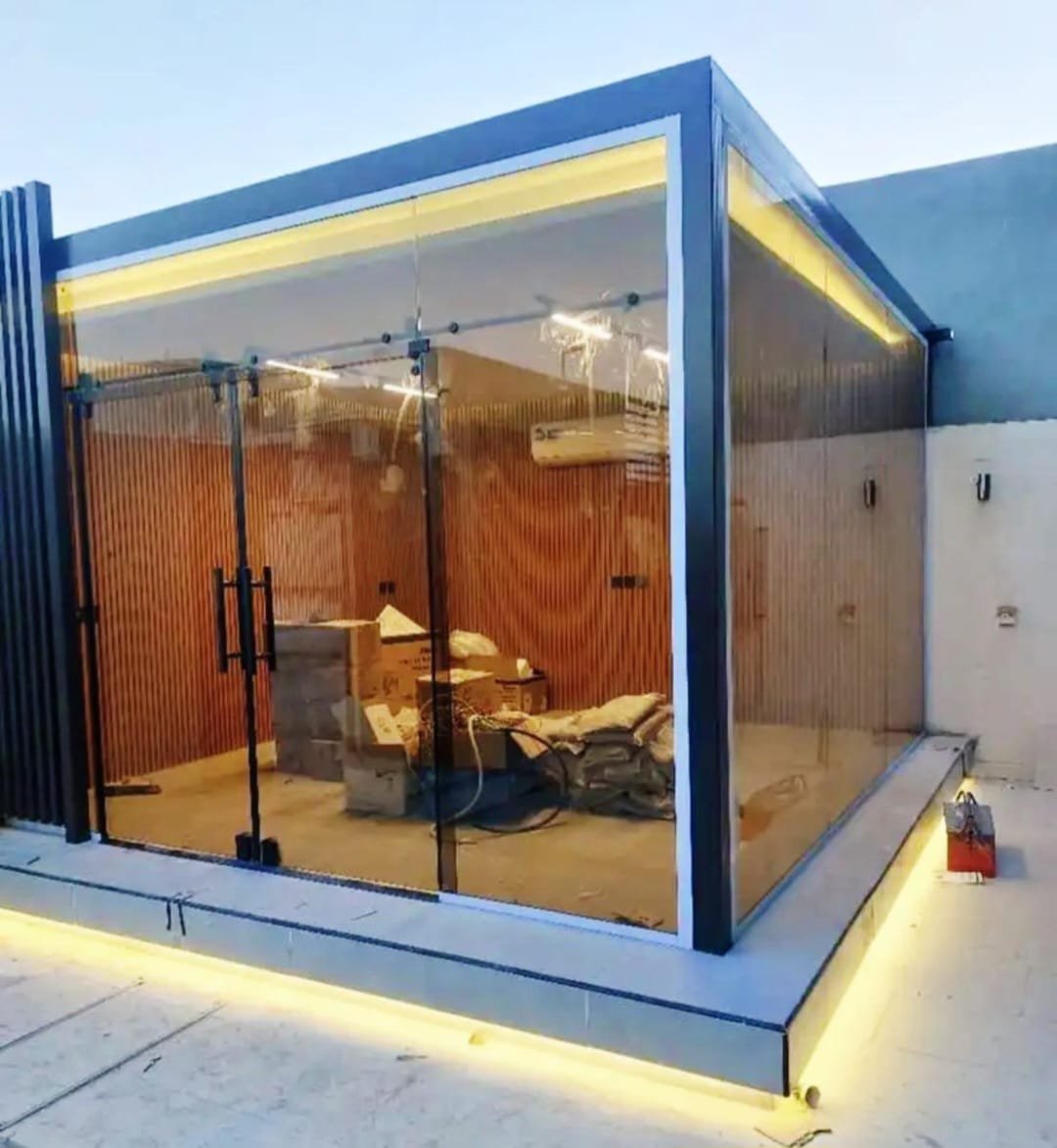 لا تدع برد الشتاء القارس أو الغبار يحرمك من متعة الجلوس في الخارج. مع مظلات وسواتر الرياض، نبتكر لك ملاحق وغرفاً زجاجية بإطلالات بانورامية خلابة، معزولة تماماً عن البرد والمطر والغبار بفضل استخدام الزجاج المزدوج (Double Glazing) وقطاعات الألمنيوم المحكمة. استمتع برؤية السماء والحديقة وأنت في قمة الدفء والرفاهية داخل جلسة مصممة خصيصاً لراحتك النفسية والجسدية.