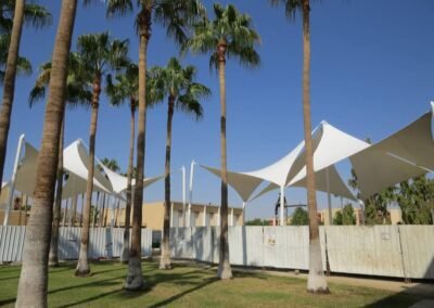 في البيئات التعليمية والتربوية، الأمان هو المعيار الأول الذي لا نقاش فيه. تدرك مظلات وسواتر الرياض أهمية توفير مساحات ظليلة واسعة وآمنة للطلاب، لذا ننفذ مظلات ساحات المدارس والجامعات بمواصفات قياسية معتمدة من وزارة التعليم. نستخدم فيها خامات أصلية مقاومة للحريق والاشتعال، وهياكل مثبتة بمتانة عالية جداً لتتحمل الرياح والعوامل الجوية، لنخلق بيئة لعب وتعلم مريحة، صحية، ومحمية من ضربات الشمس.