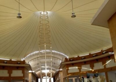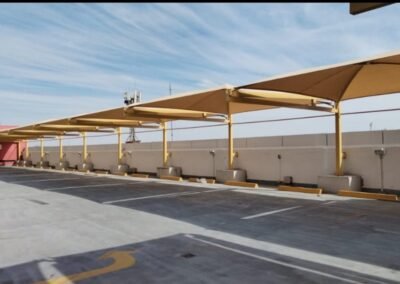 للمساحات الواسعة والمشاريع العملاقة التي تتطلب بصمة معمارية فريدة وتغطية شاملة، تقدم مظلات وسواتر الرياض فن الشد الإنشائي بأعلى المعايير العالمية. نحن نستخدم أغشية معمارية متطورة للغاية مثل (Teflon & PVC) لنخلق أشكالاً انسيابية معقدة تتحدى الجاذبية، وتغطي مساحات ضخمة في المولات والملاعب دون الحاجة لأعمدة خرسانية تعيق الحركة أو تشوه المنظر، مما يمنح المكان مظهراً مستقبلياً مبهراً ويضمن ظلاً ممتداً وانسيابية في التصميم.