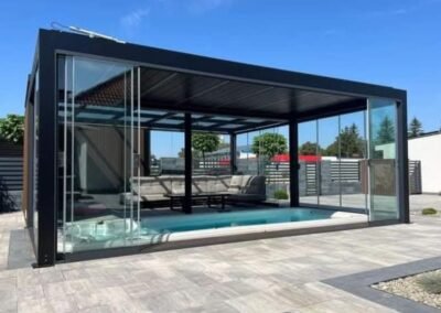 حول منطقة مسبحك إلى منتجع خاص يتمتع بالخصوصية التامة والحماية لعائلتك. توفر مظلات وسواتر الرياض تغطيات ذكية ومبتكرة للمسابح (سواء باستخدام اللكسان الشفاف المقاوم للكسر أو القماش المعالج)، تسمح هذه المظلات بمرور ضوء الشمس الطبيعي المفلتر مع حجب الأشعة فوق البنفسجية الضارة والحرارة الحارقة. حلولنا تضمن لك مسبحاً نظيفاً خالياً من الغبار والحشرات، آمناً للأطفال، وبعيداً تماماً عن أنظار الجيران والمتطفلين.