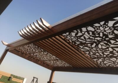 حول حديقتك أو سطح منزلك إلى قطعة من المنتجعات الفاخرة وجزيرة للراحة. تبدع مظلات وسواتر الرياض في تصميم وتنفيذ جلسات خارجية (برجولات) تمزج بين الظل والضوء بطريقة فنية ساحرة. سواء كانت مصنوعة من الحديد المشكل بدقة ليشبه الخشب الطبيعي أو من المعدن المودرن الصرف، ستكون برجولاتنا هي المكان المفضل لجمع العائلة، إقامة حفلات الشواء، وتناول القهوة في الهواء الطلق وسط أجواء من الرفاهية.
