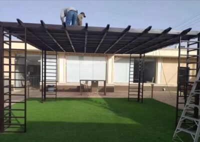 - ✅ الخبرة الهندسية والتصميم: لا نعمل بعشوائية؛ كل مشروع يخضع لدراسة لتحديد الأحمال، اتجاه الرياح، والشكل الأنسب للمكان.