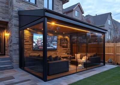 لا تدع برودة الطقس تحرمك من الاستمتاع بجمال الشتاء والمطر، فنحن في مظلات وسواتر الرياض متخصصون في بناء الملاحق الزجاجية والجلسات الشتوية المعزولة تماماً باستخدام زجاج السيكوريت المزدوج وقطاعات الألمنيوم المحكمة التي تمنع تسرب الهواء والماء والغبار، مما يتيح لك الجلوس في الخارج بدفء ورفاهية مع إمكانية تجهيز المكان بمدفأة أو مشب تراثي لتكتمل الأجواء الشتوية الحميمية، ولتجهيز منزلكم لاستقبال الشتاء بأرقى الجلسات يمكنكم التواصل معنا وحجز موعد المعاينة على الرقم 0556378522 لنحقق لكم الدفء والجمال.